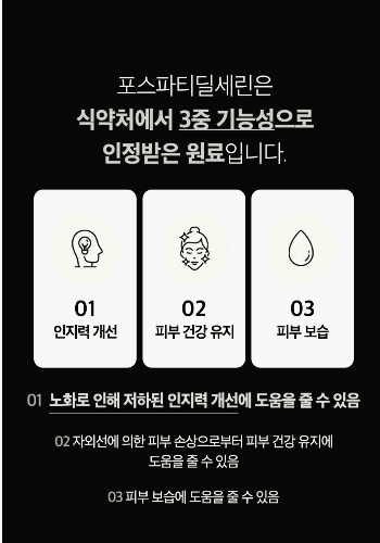 ν¬μŠ€νŒŒν‹°λ”œ 세린은 μΈμ§€μ§ˆ ν˜•νƒœλ‘œ 체내 ν‘μˆ˜λ˜μ–΄ 신경세포막에 직접 톡합될 수 μžˆλŠ” 높은 생체 이용λ₯ μ„ κ°€μ§‘λ‹ˆλ‹€. ν•˜μ§€λ§Œ, λ³΅μš©λŸ‰μ΄ 과도할 경우 일뢀 λΆ€μž‘μš©μ΄ λ°œμƒν•  수 μžˆμŠ΅λ‹ˆλ‹€.